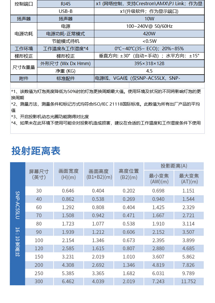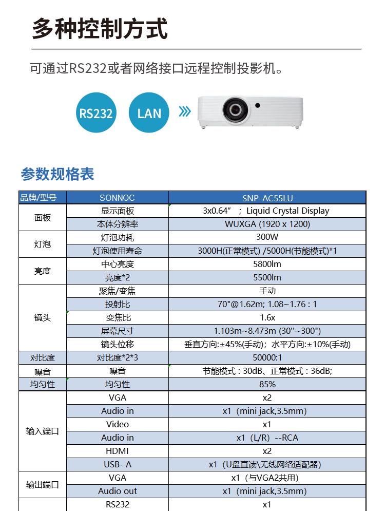 索诺克(Sonnoc)SNP-AC55LU 液晶投影仪 投影机办公培训( WUXGA分辨率 5500流明 3LCD显示技术)