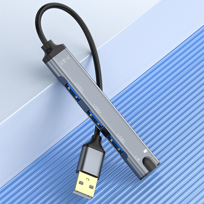 晶华 USB外置声卡 分线器一拖四HUB集线器扩展坞 电脑笔记本台式接3.5mm耳机麦克风音响转换器头 合金 N800